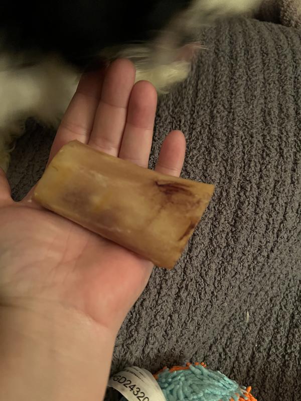 My dog likes to chew on these bones, but for something that is called small it was large. I will continue to give them to him because I don't worry about splintering and I believe it helps clean his teeth.