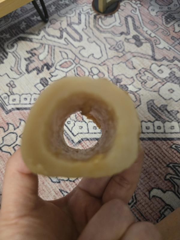 This bone had the tiniest sliver of marrow and not much of anything on the outside, so it was pretty much just a bone toy.
