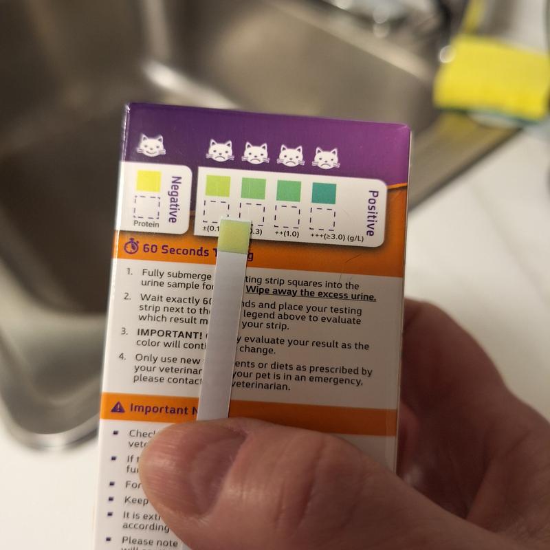 These Testing Strips measures your pet’s protein levels and can help detect underlying kidney conditions.The instructions on how to use are located on the back of the bottle and has result cards for color comparison.