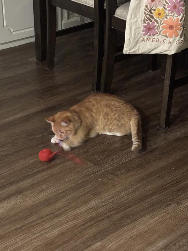 My cats loved this! So much fun for them. Even my uninterested in anything but food cat was chasing this around. I would recommend this to everyone. Long lasting
