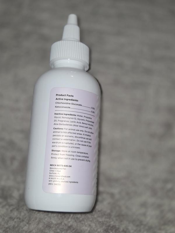 Chew + Heal Advanced Antiseptic Otic Chlorhexidine Ear Flush for Dogs, 12-fl oz bottle