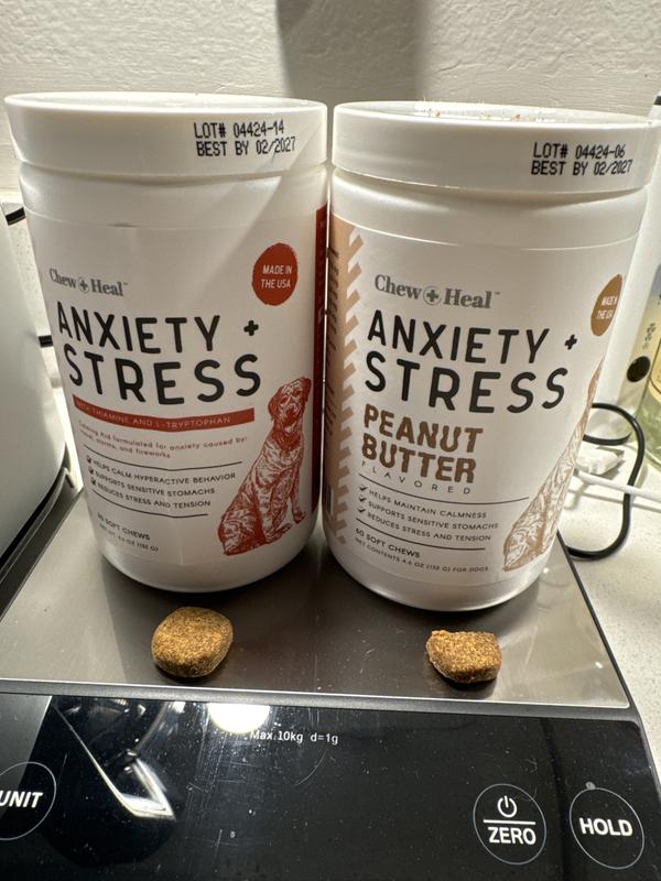 Chew + Heal Anxiety + Stress Classic Chicken & Peanut Butter Flavored Soft Chews Supplement for Dogs, 120 Count