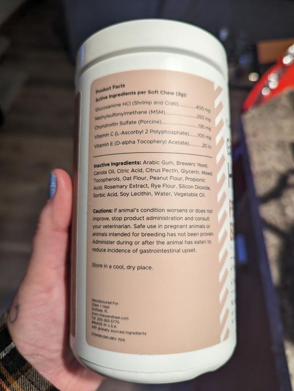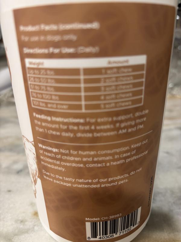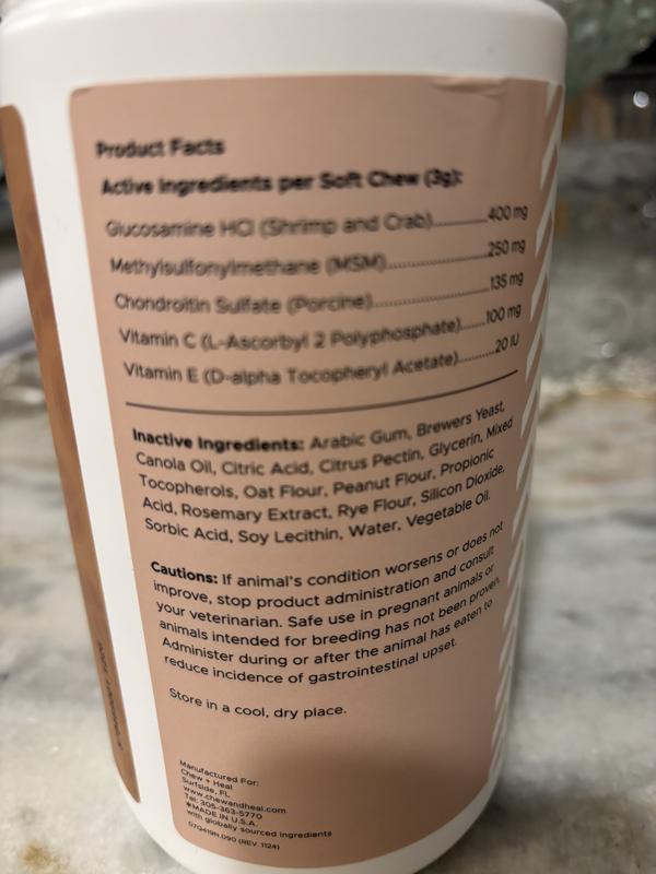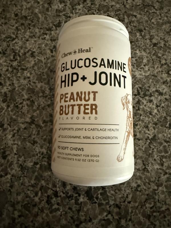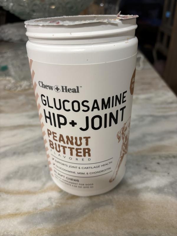 Chew + Heal Glucosamine Hip + Joint Peanut Butter Flavored Soft Chew Joint Supplement for Dogs, 90 count