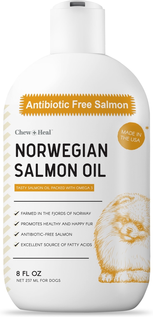Chew + Heal Norwegian Salmon Oil Skin & Coat Supplement for Dogs & Cats, 8-fl oz bottle