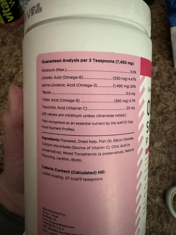 Chew + Heal Omega Skin + Coat with Flaxseed, Kelp & Omegas Powder Supplement for Dogs, 5.4-oz jar