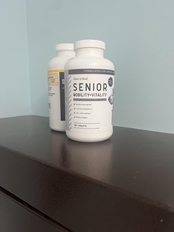 Chew + Heal Senior Mobility + Vitality Hip & Joint & Mood Support Chewable Tablets Supplement for Dogs, 120 count