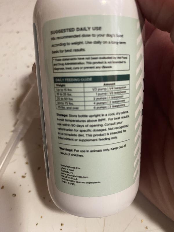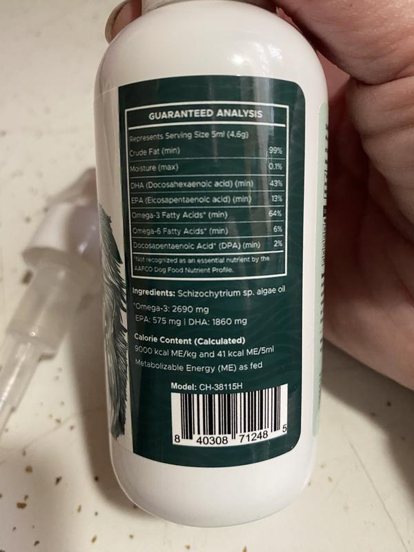 Chew + Heal Vegan Single Ingredient EPA & DHA Omega-3 Algae Oil Skin & Coat Supplement for Dogs, 8-fl oz bottle