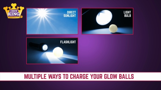 - Quickly charge these balls under any bright light source, including sunlight, lamps, and your smartphone’s flashlight mode.