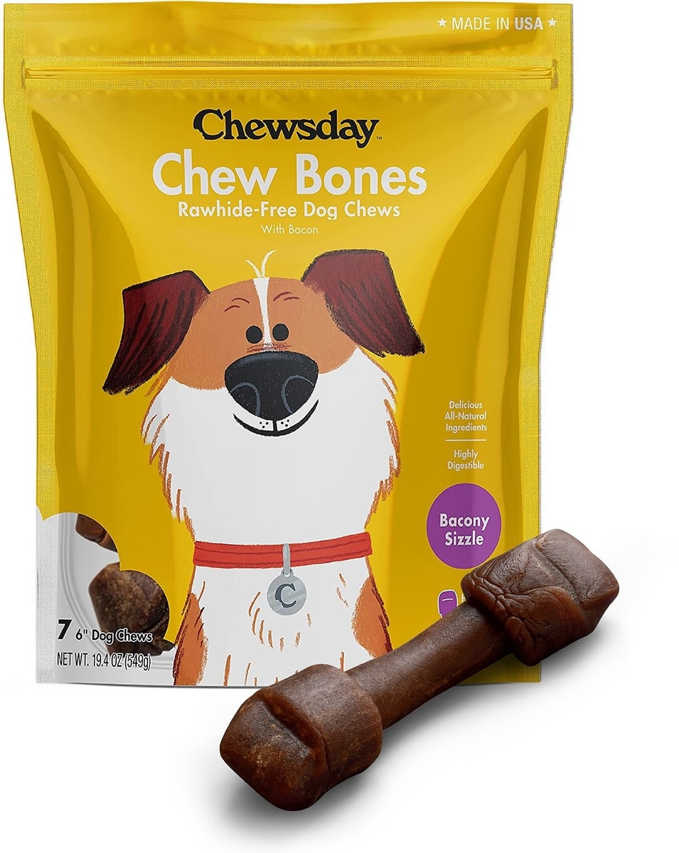 Chewsday Bacony Sizzle Chew Bones Rawhide-Free Dog Hard Chews, 7 count, Original