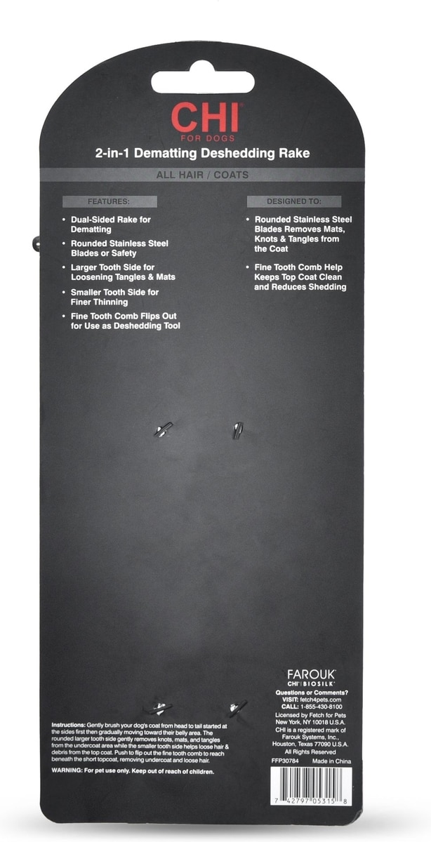 CHI 2-in-1 Dematting Deshedding Rake Dog Grooming Tool