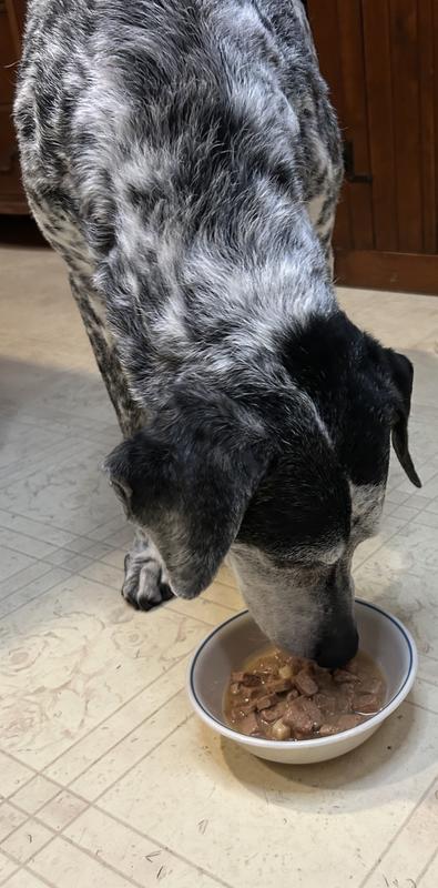 My dogs love GRAVY. My older dog (10-year-old Lab/Golden) is picky. She inhaled this food. My younger dog (5-year-old Chocolate Lab) eats anything, he loved this too. Both licked the bowl clean! I like the ingredients (first ingredient is chicken) and no artificial color or other junk. I make home-prepared food for my dogs, but I would buy this to have on hand.