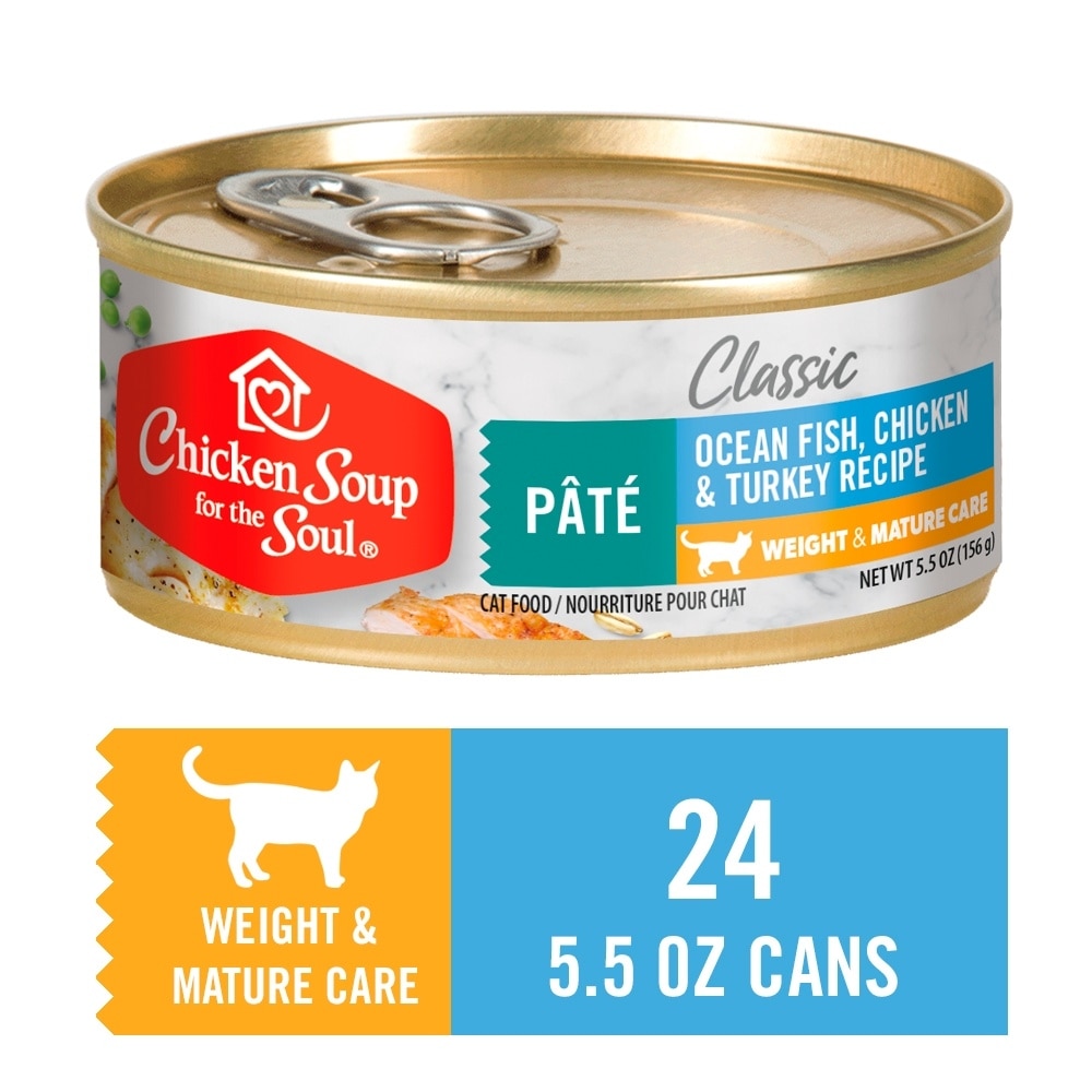 - Chicken Soup for the Soul Classic Cat Multipack Chicken & Whitefish Recipe Pate Turkey & Giblet Recipe Pate Wet Cat Food, 5.5-oz can, 24 count$35.76 Chewy Price$42.96 List Price$33.97 Autoship PricePromo, New Customers Only: Spend $49+, Get $20 eGift Card