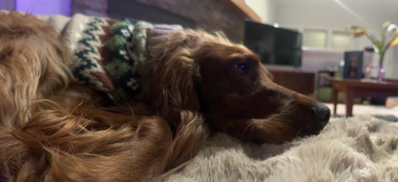 Our Irish setter loves this sweater and gets so exited when we get it out. It fits him so well and keeps him warm.