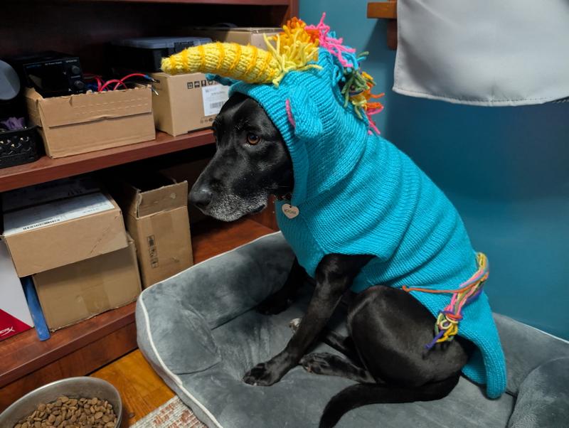 - Transform your furry friend into a magical unicorn with this adorable sweater.