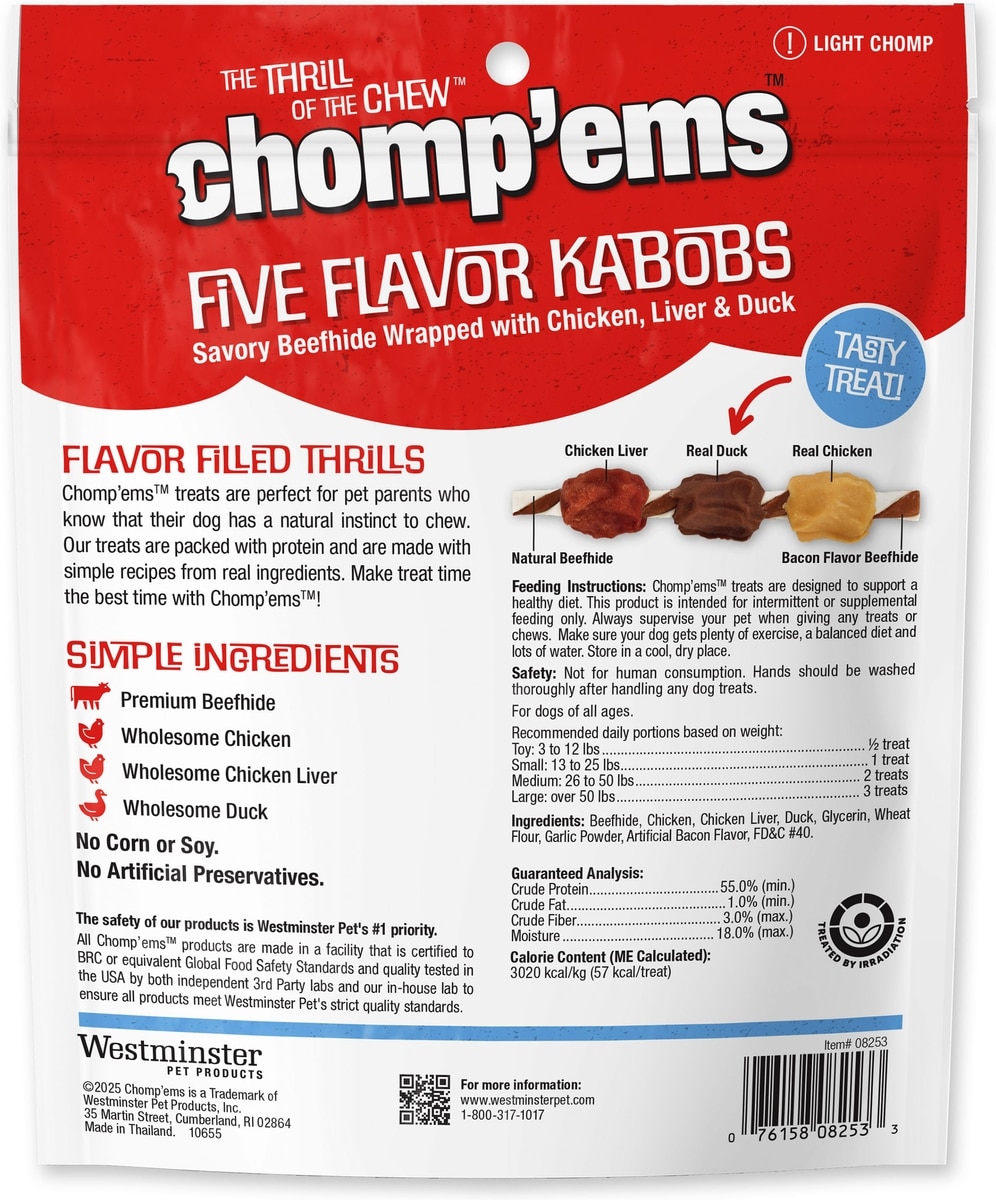 Chomp'ems Five Flavor Kabobs Dog Treats, 15 count