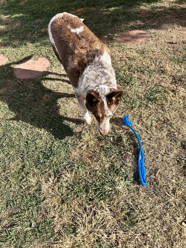 It’s a great way to throw the ball without touching slobber. It sends it a good distance and keeps my Dobermans entertained and out of breath. Highly recommende