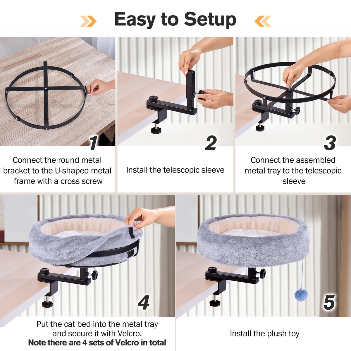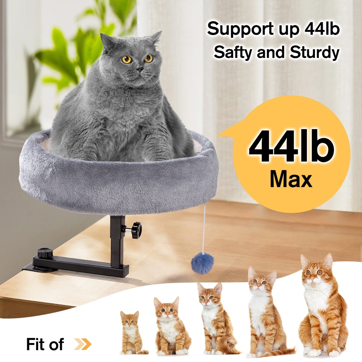 Constructed from robust metal, this cat bed can support up to 44 pounds, ensuring stability even when your cat jumps in; desktop thickness must exceed 0.47 inches for security.