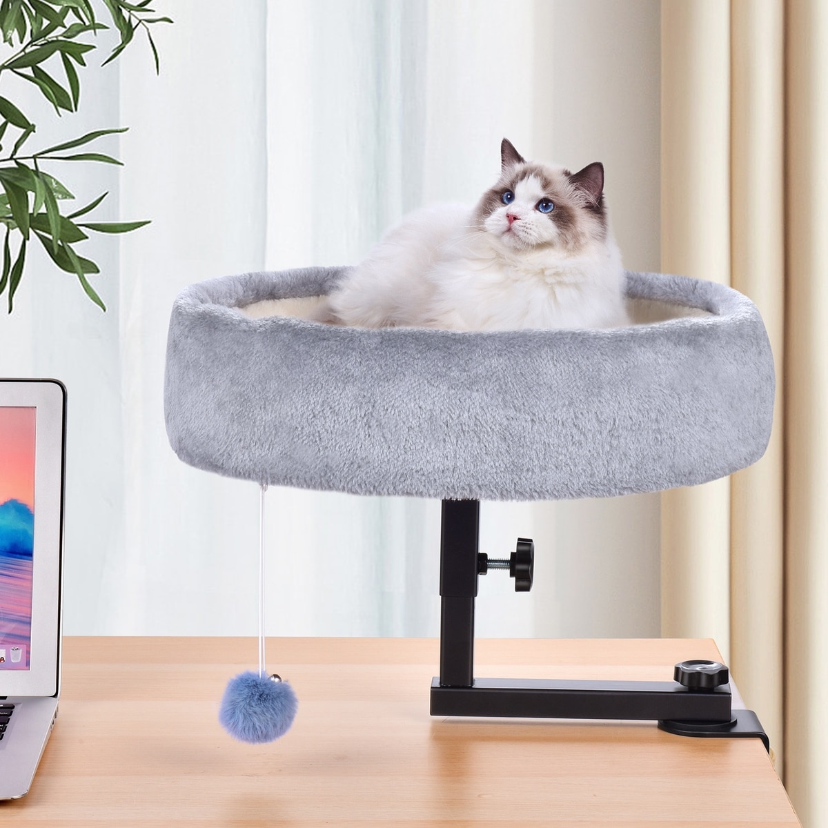 360° rotation and adjustable height settings allow you to customize the bed’s position effortlessly, so your cat can lounge comfortably without crowding your workspace.