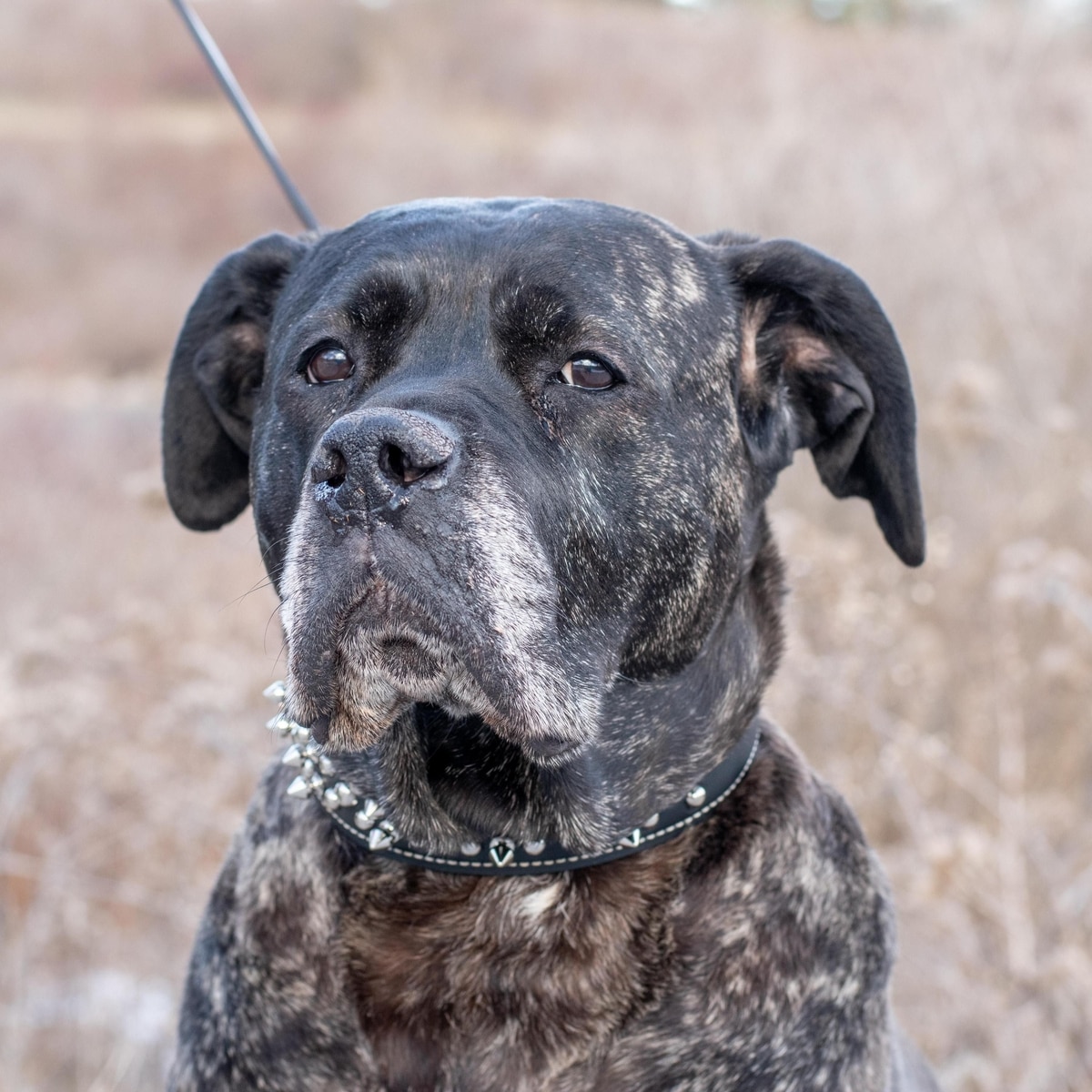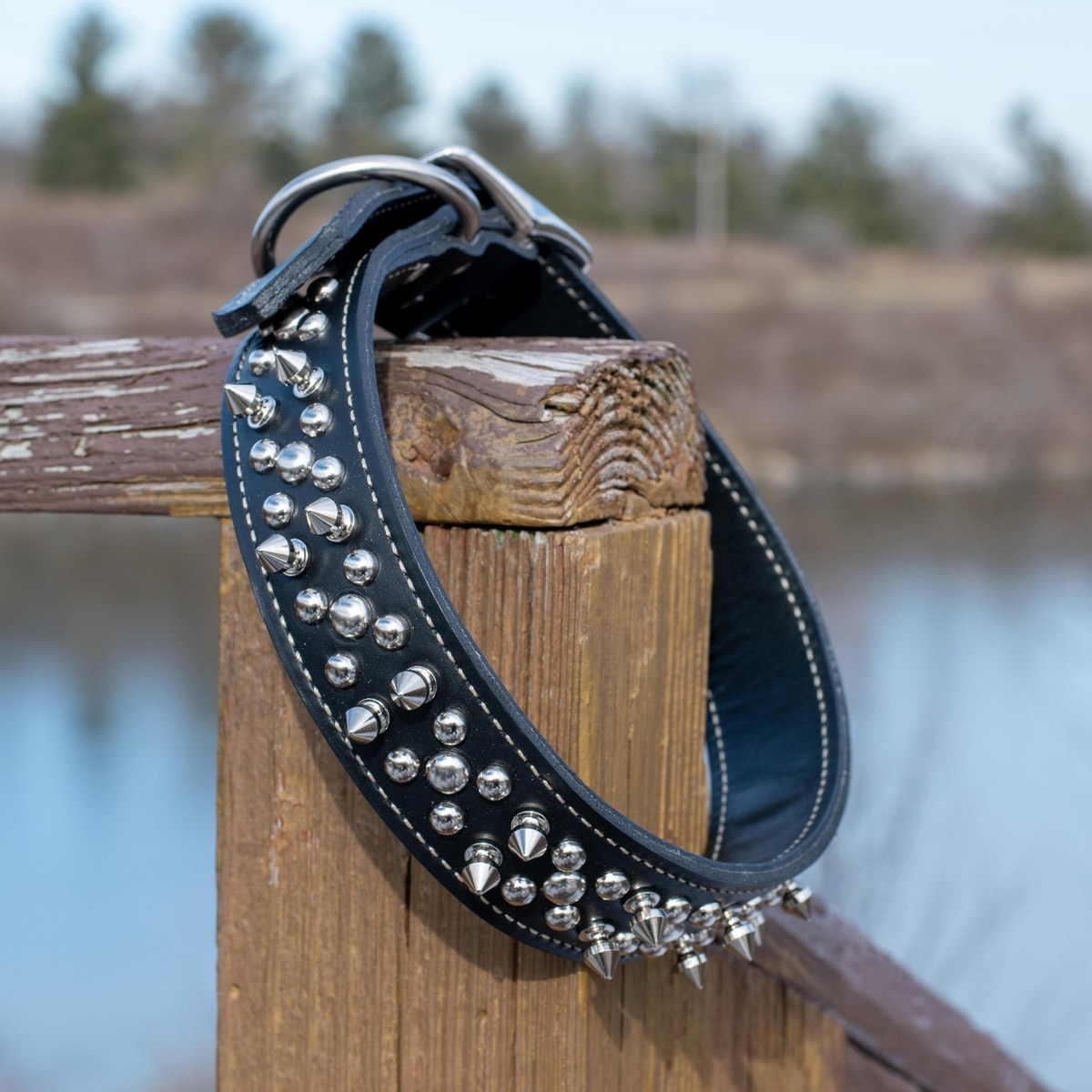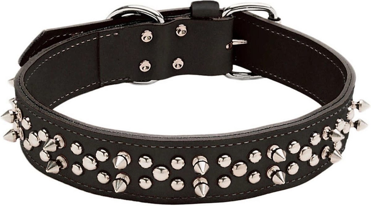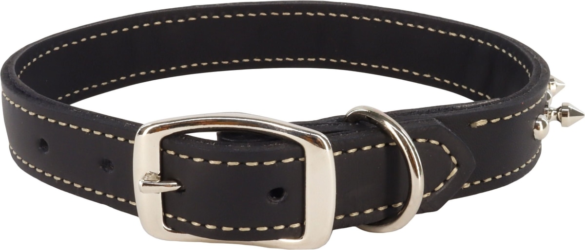 Circle T Oak Tanned Leather Double-Ply Spiked Standard Dog Collar, Black, Large: 26-in neck, 1/2-in wide