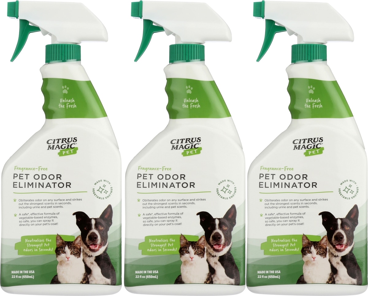 Citrus Magic Pet Odor Eliminator Fragrance-Free Pet Deodorizer Spray, 22-fl oz bottle, case of 3