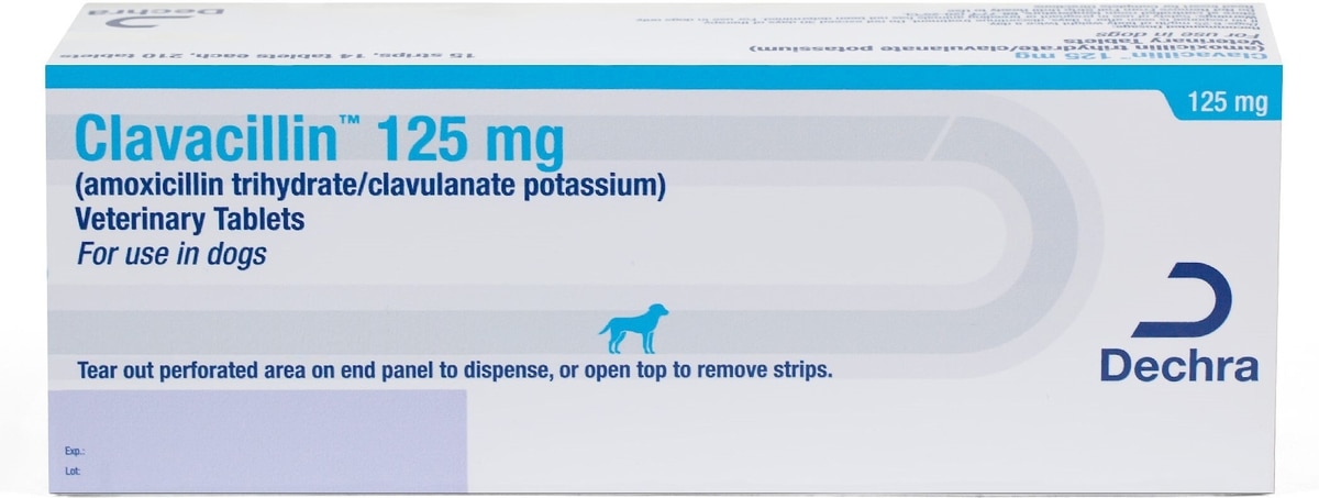 Clavacillin (amoxicillin trihydrate/clavulanate potassium) Tablets for Dogs & Cats, 125-mg, 1 tablet
