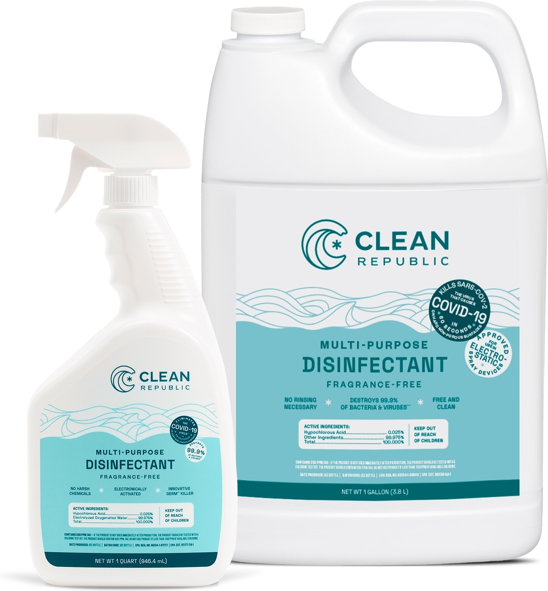 Clean Republic Multi-Purpose Disinfectant Spray, 32-oz bottle & 1-gal jug, 2 count