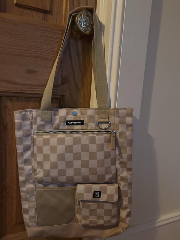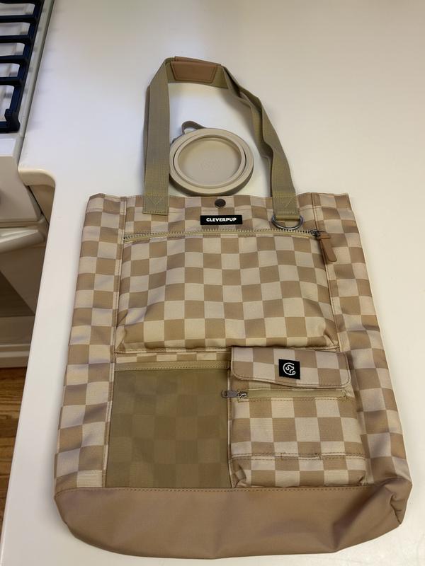 We absolutely love the Cleverpup tote!! Great quality, easily wipe-able and the perfect size. We are on the go and this is perfect for weekend adventures! I wasn't sure if I would like the checker print in person but I love it. Lots of pockets inside and out to store goodies. Much more stylish than the reusable grocery bag we had been using :)