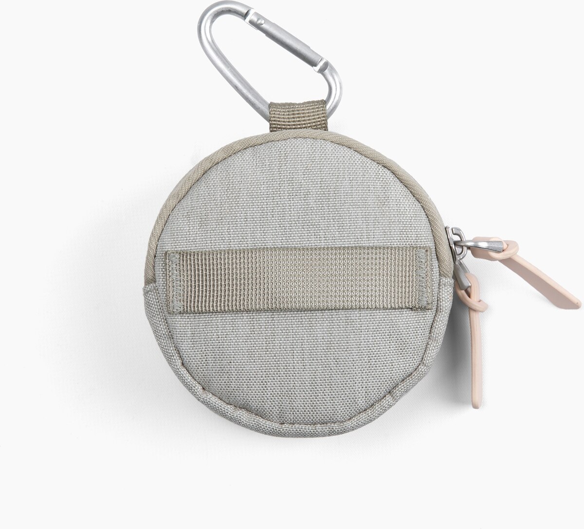 - This handy pouch features a webbing strap on the back for dangle-free walks—simply thread the leash through and attach to the handle or D-ring with the carabiner.