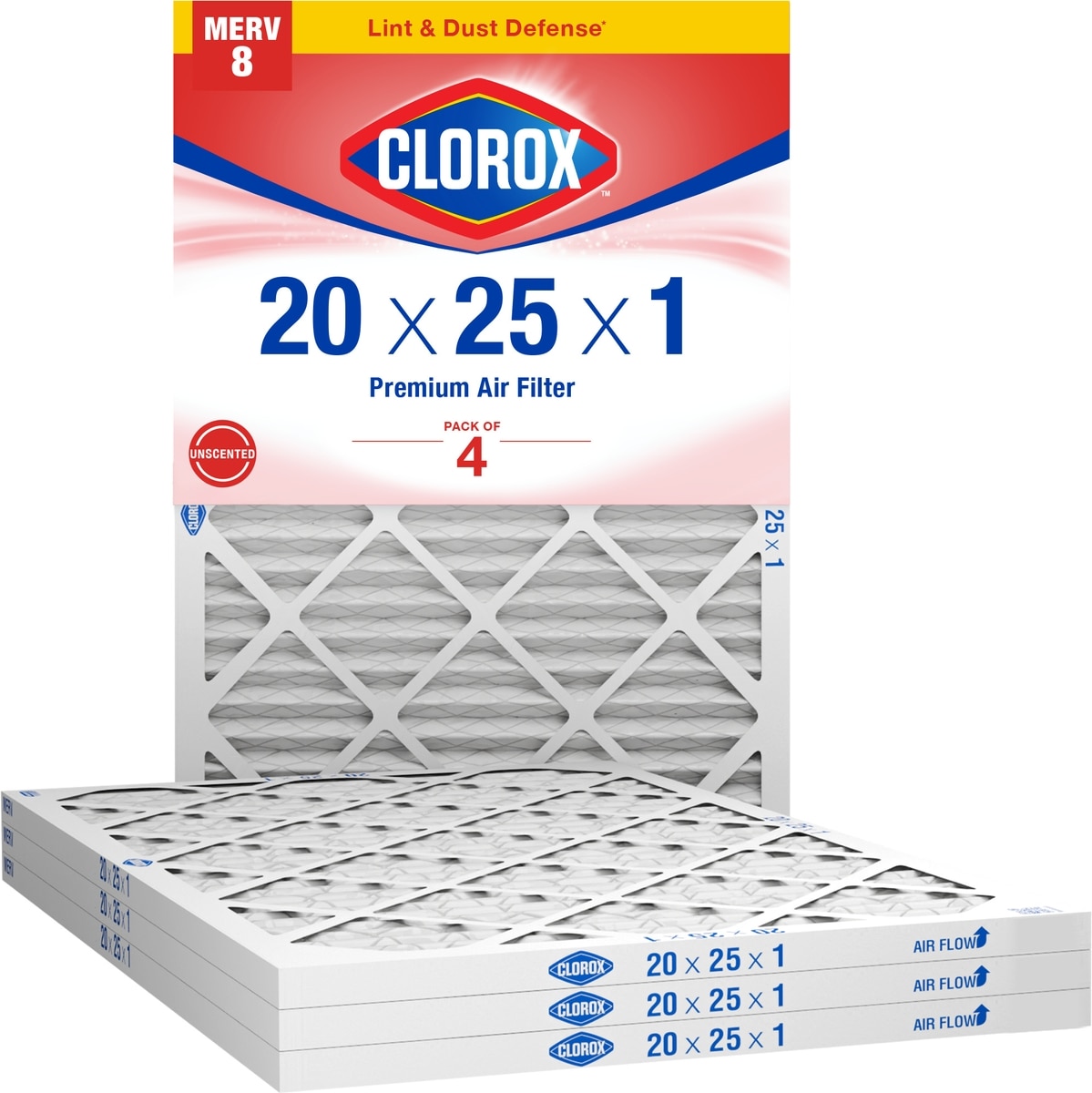 Clorox Air Filters MPR600 & FPR 5 MERV 8 Pleated HVAC AC Furnace Air Filters, 20 x 25 x 1-in, 4 count