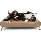 Minimal assembly required. Attach the back support to the bed base using the included screws and combination Allen/Phillips tool. Turn the bed upside down and attach the legs to the pre-installed mounting points. Tighten all hardware securely, ensuring legs sit evenly before final tightening. No additional tools required.