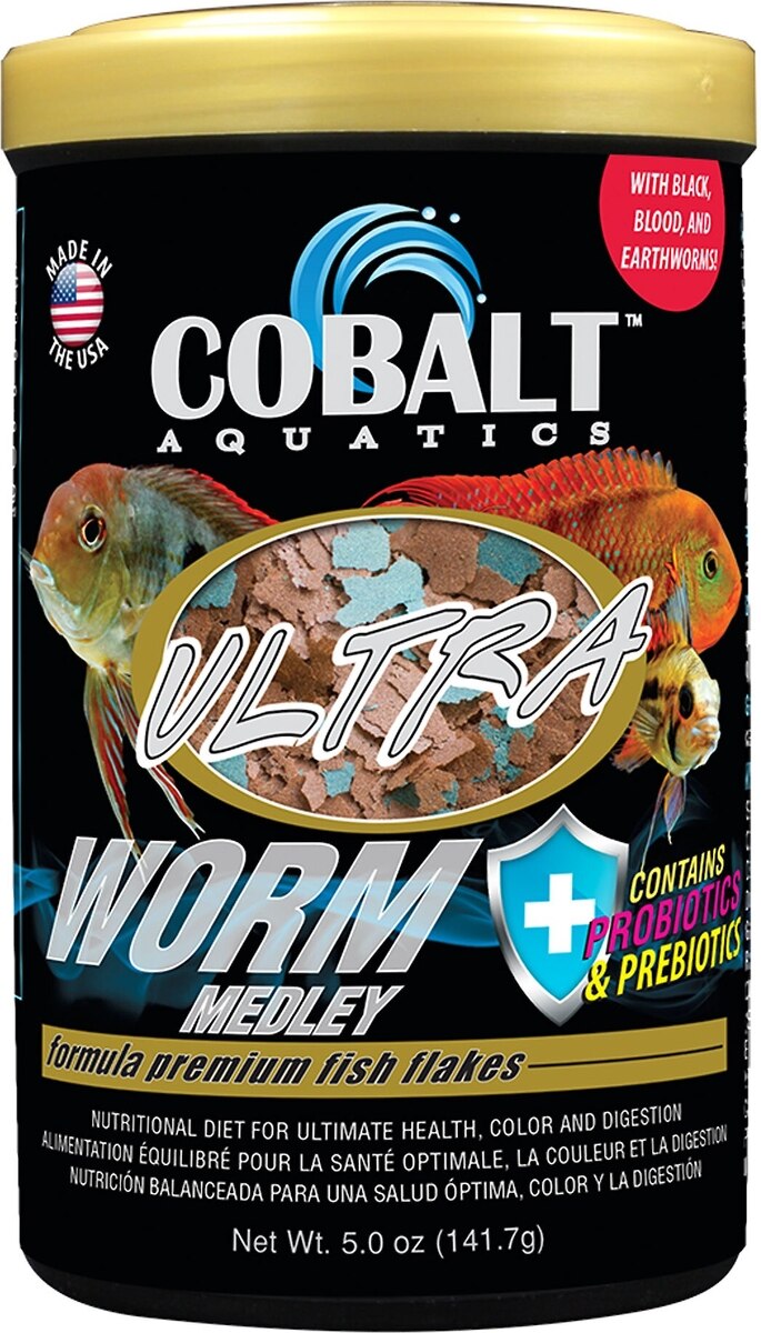 Cobalt Aquatics Ultra Worm Medley Flakes Fish Food, 5-oz jar
