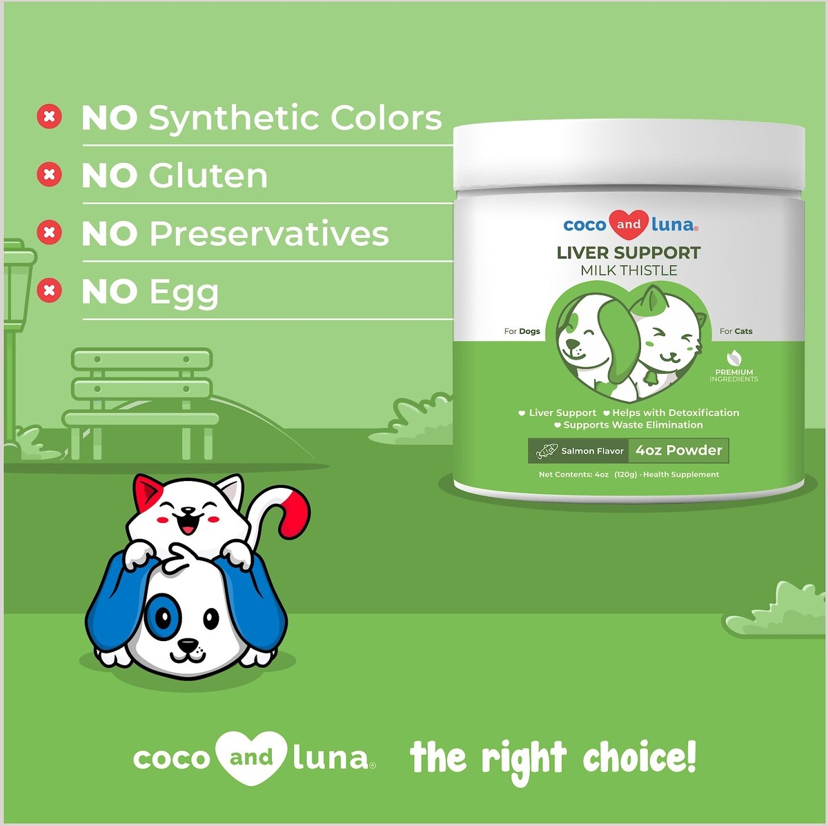 Coco and Luna Liver Support Organic Milk Thistle Salmon Flavor Powder Dog & Cat Supplement, 4-oz jar