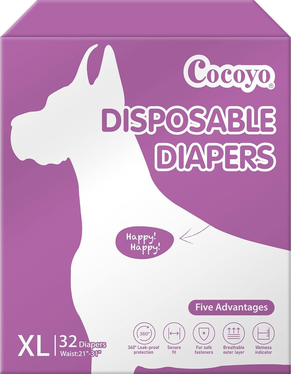 COCOYO Super Absorbent Disposable Female Dog Diapers, X-Large: 21 to 31-in waist, 32 count