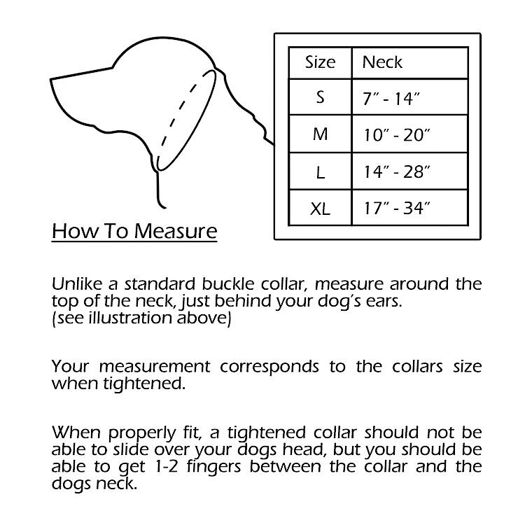 My pup's head is the same size as her neck and she would occasionally slip out of her old collar. When that happened in a busy parking lot I knew I needed to find a better option. The Comfortflex collar is perfect for her. She can't slip out, but it's not tight when she's not leashed and she seems to be comfortable wearing it. It's nicely padded and seems to be very well made. The reflective stripes are very helpful when I take her out for her last potty break at night. For reference, she is a 19 pound dachshund, rat terrier, beagle mix and the small fits her well with plenty of extra room.