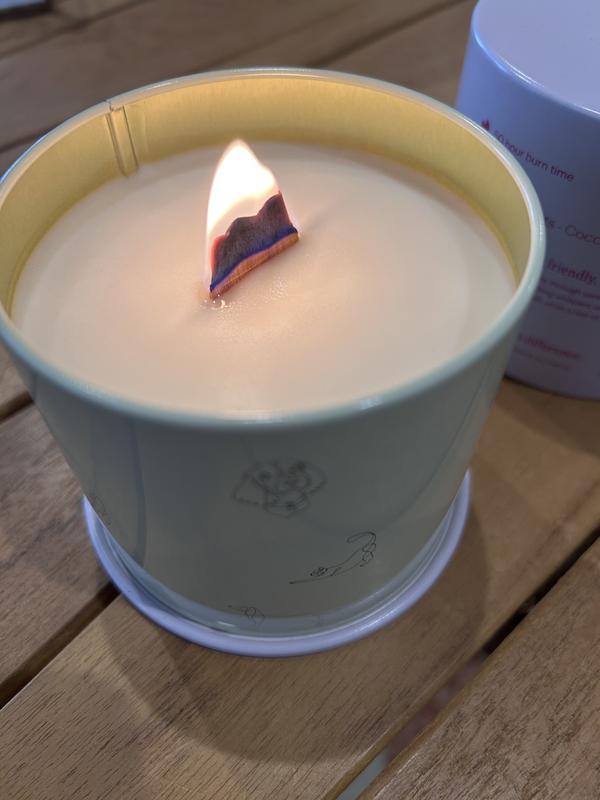 I love that these candles are pet (and human) friendly! The smell fills the air but it’s not too overpowering. It’s quite delightful actually. I prefer candles with lids to extinguish the flame when I’m done so that’s a plus. Seems to burn evenly but haven’t made it that far yet. Would buy again!