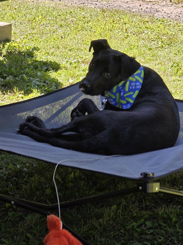 Wanted a collapsible bed for camping. Initially bought the large size, but turned out to be way too large. My dog also didn’t like it because there’s not a lot of support and the mesh moved when he stepped on it. Ended up getting the medium which is a little smaller than I would like but at least more manageable in terms of taking camping with us and packing up. The large cot is huge even in its carrying case. I ended up returning the large size and Chewy allowed me to donate it to a local shelter so hopefully some dog makes good use of it!