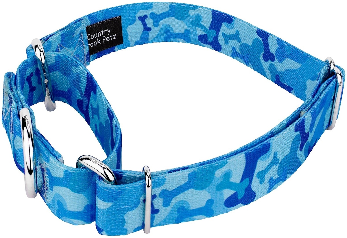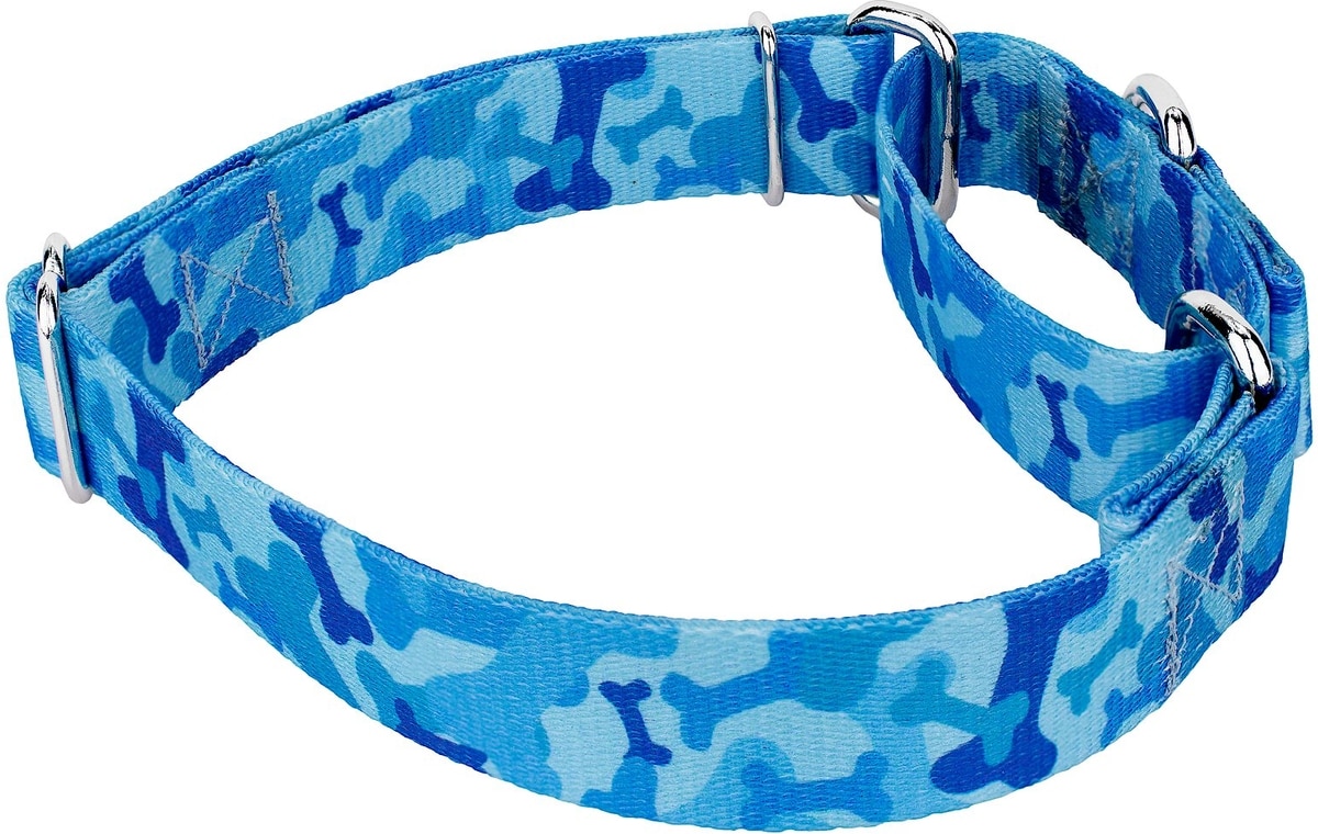 Country Brook Design Bone Camo Polyester Martingale Dog Collar, Blue, Small: 11 to 15-in neck, 5/8-in wide