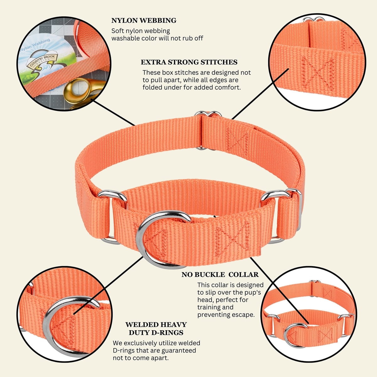 Country Brook Design Heavyduty Nylon Martingale Dog Collar, Mango, Large: 18 to 26-in neck, 1-in wide