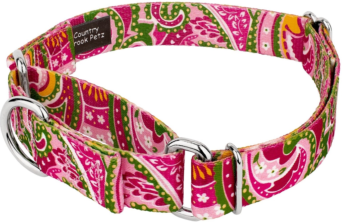 Country Brook Design Paisley Polyester Martingale Dog Collar, Pink, Small: 11 to 15-in neck, 5/8-in wide