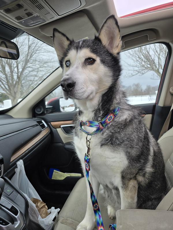 Love the tie dye however the loop in collar gets caught in hi mouth trying to chew on it