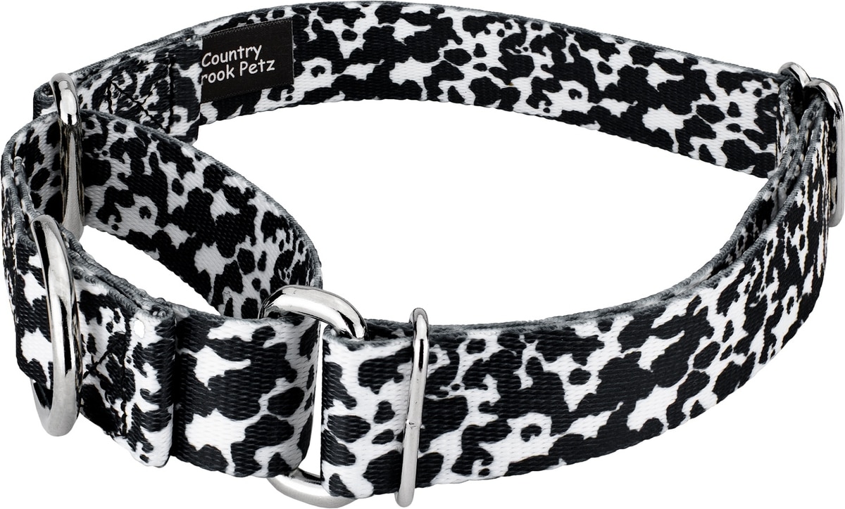 Country Brook Petz Dairy Cow Polyester Martingale Dog Collar, Black, Small: 11 to 15-in neck, 5/8-in wide