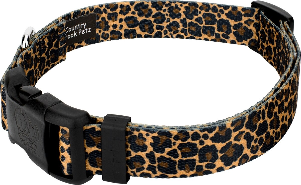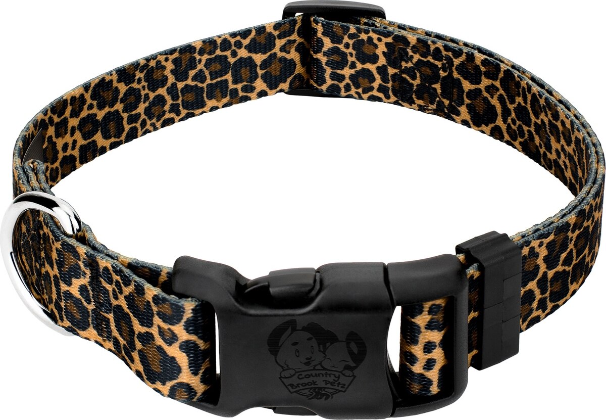Country Brook Petz Deluxe Leopard Print Dog Collar, Brown, 11 to 13-in neck, 5/8-in wide
