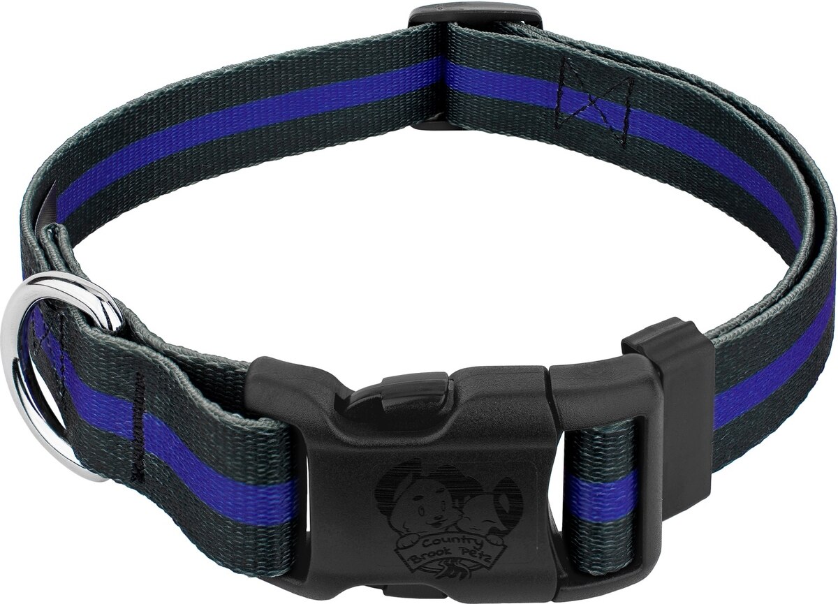 Country Brook Petz Deluxe Thin Blue Line Dog Collar, Black, Small
