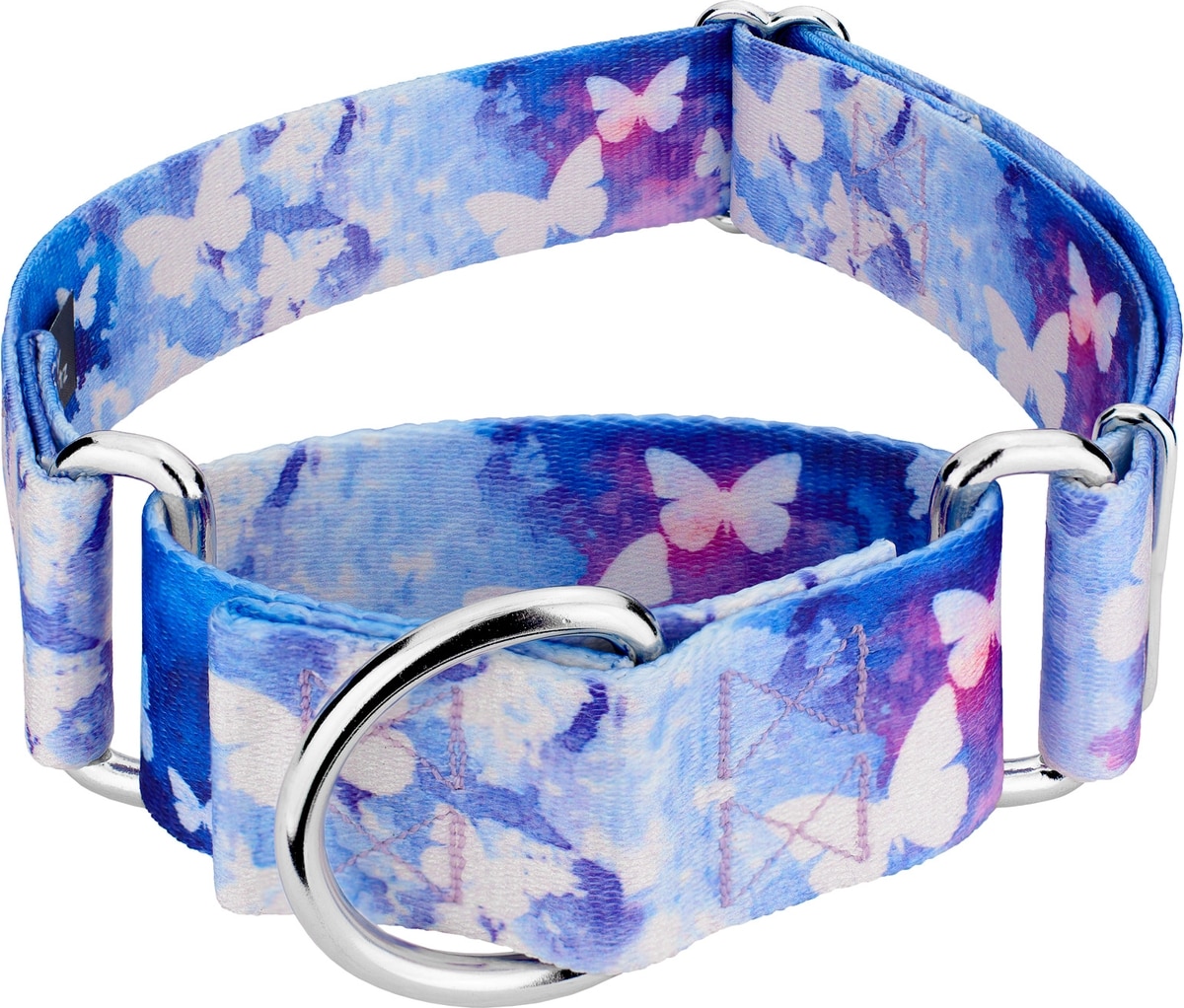 Country Brook Petz HossFit Jr Watercolor Butterflies Wide Martingale Dog Collar, X-Large