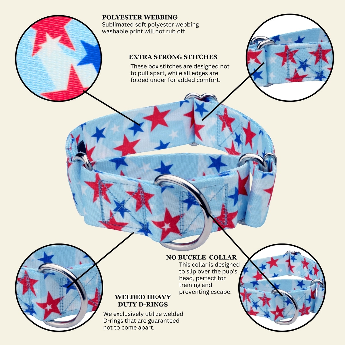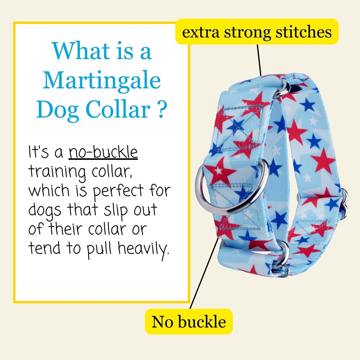 Country Brook Petz HossFit Jr American Celebration Wide Martingale Dog Collar, Blue, Medium: 15 to 21-in neck, 1.5-in wide