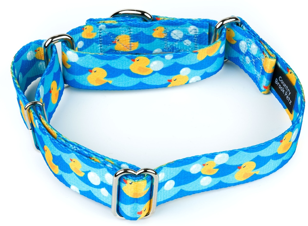 Country Brook Petz Just Ducky Martingale Dog Collar, Blue, Small: 11 to 15-in neck, 5/8-in wide
