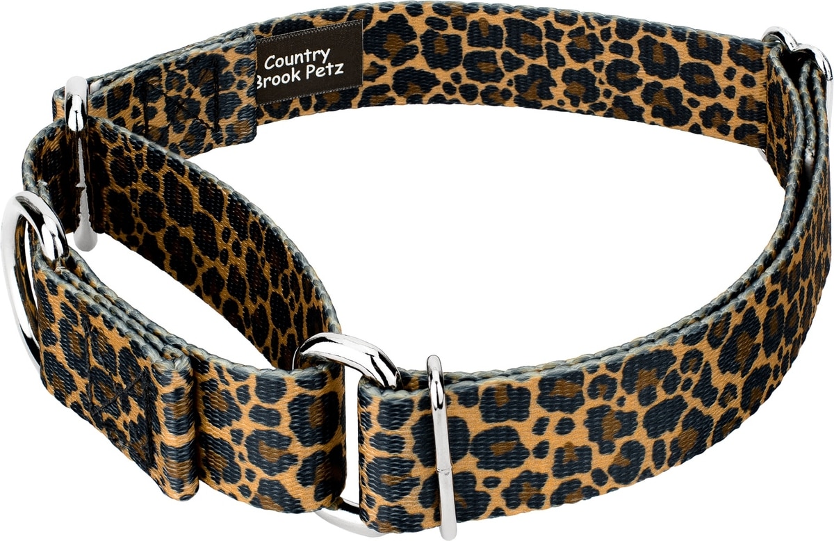 Country Brook Petz Leopard Print Polyester Martingale Dog Collar, Brown, Small: 11 to 15-in neck, 5/8-in wide