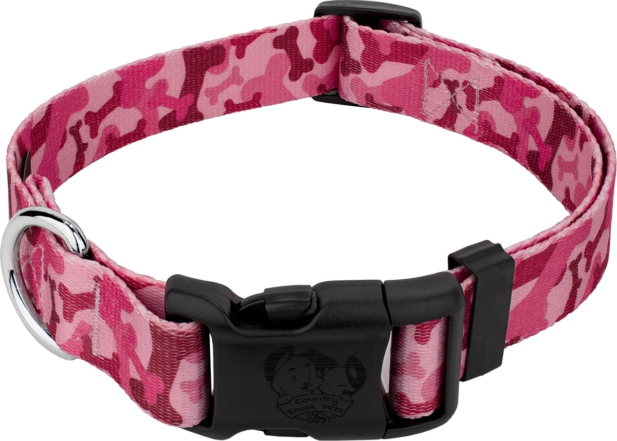 Country Brook Petz Pink Bone Camo Deluxe Dog Collar, Pink, Small