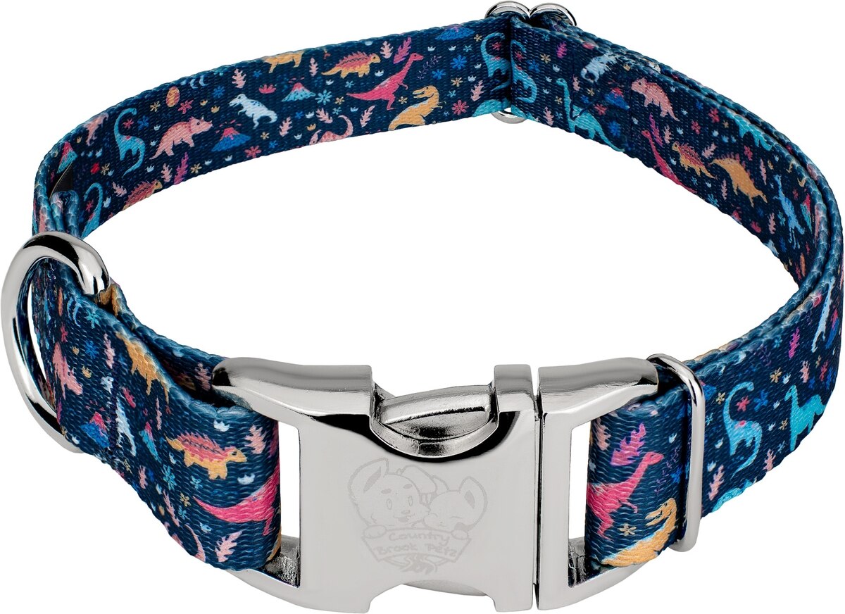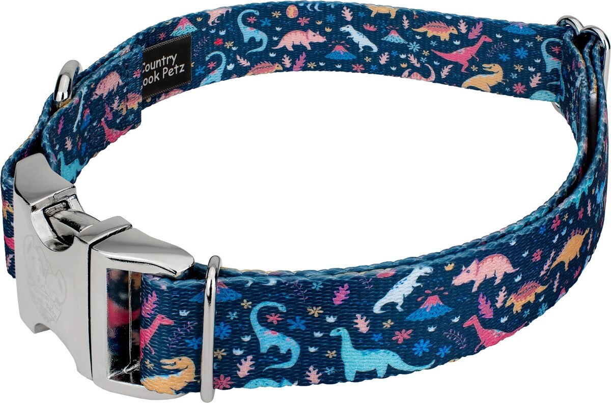 Country Brook Petz Premium Dinosaurs Dog Collar, Blue, Small: 11 to 13-in neck, 5/8-in wide