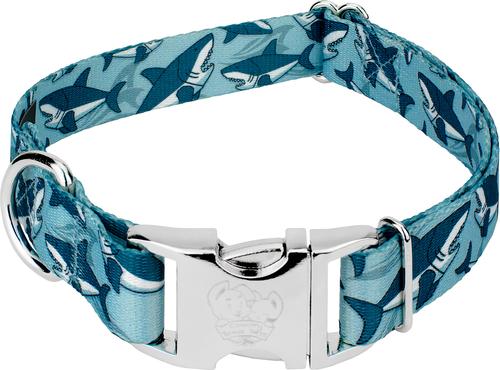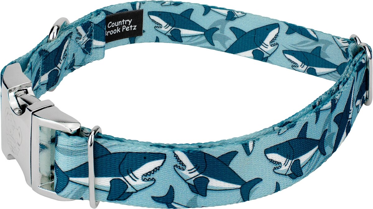 Country Brook Petz Premium Sharks Dog Collar, Blue, Small: 11 to 13-in neck, 5/8-in wide